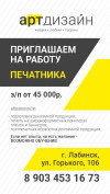 В рекламное агентство требуется печатник.