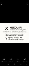 Тагже муж на час - повешу зеркала, гардины люстры. Электрика и сантехника. Корпусная мебель от 8-10%. Установка кухонных гарнитуров -12%. Мебель с маркетплейсов по договоренности. Без выходных
