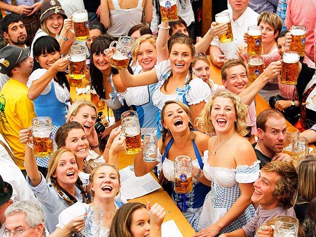 ![]() ![]() История Октоберфест (Oktoberfest) началась с бракосочетания баварского наследника престола, кронпринца Людвига I и принцессы Терезы Саксонской, которое состоялось 12 октября 1810 года. Все жители города Мюнхена были приглашены на праздничные гуляния с бесплатным пивом и конными скачками. С тех пор пор Октоберфест празднуется ежегодно и прошел уже 180 раз, прерываясь лишь во время мировых войн. В этот день в Мюнхен съезжаются баварцы, одетые в праздничные национальные одежды. |
