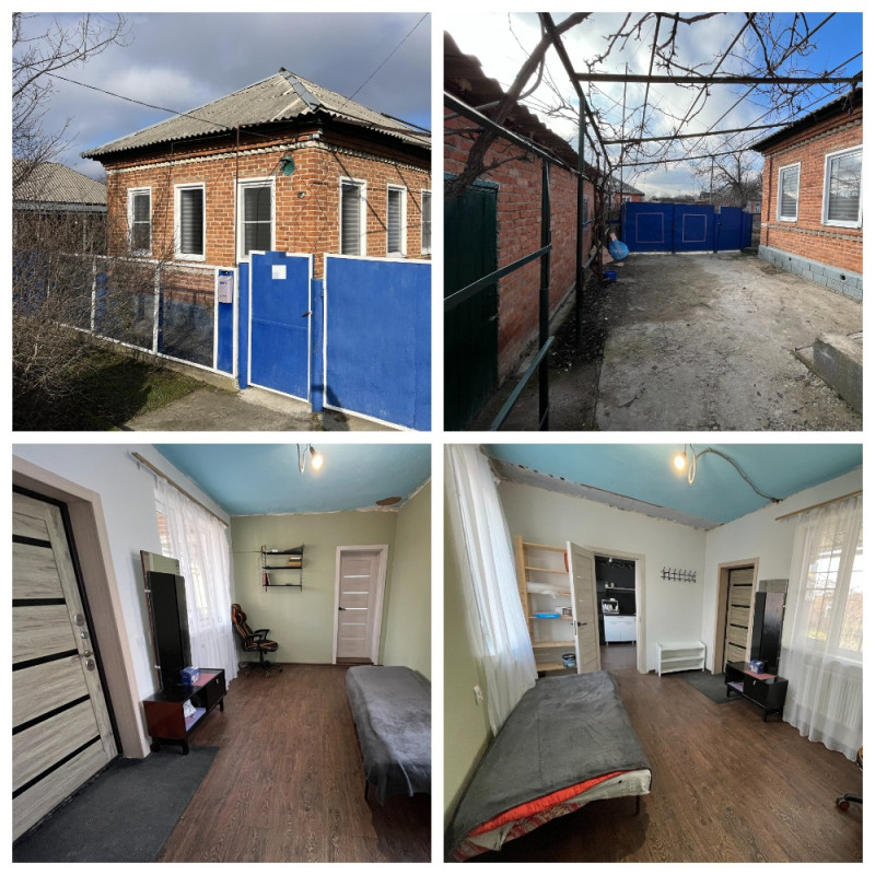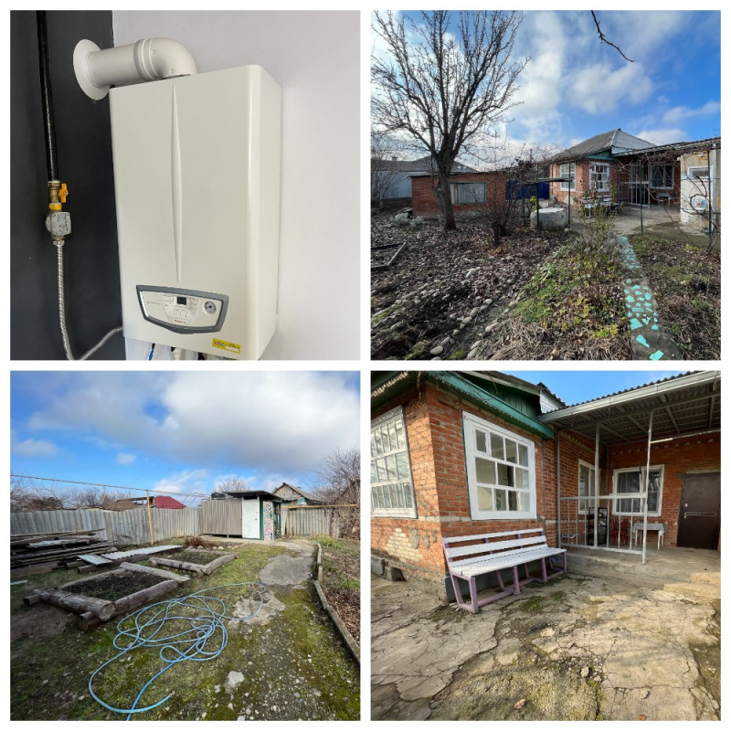 Продаётся дом из саманного блока, облицованный кирпичом в г. Лабинске по ул. Мечникова, со всеми удобствами, пл. 72 кв. м. В доме 4 комнаты, кухня, прихожая, коридор, ванная. сан. узел раздельный. Отопление газовое (настенный турбированный котел). Всё отопление новое. Сделан частично внутренний ремонт. Новые: полы; проводка; канализация; штукатурка. Подлит фундамент. Стены готовы под поклейку обоев. ПВХ окна. Дом имеет два входа. Имеется заезд, гараж, земельный участок 5, 7 сотки (в собственности), летний душ, плодовые деревья, виноград. Место тихое, асфальтированная дорога почти до самого дома. Магазины и школа рядом.
