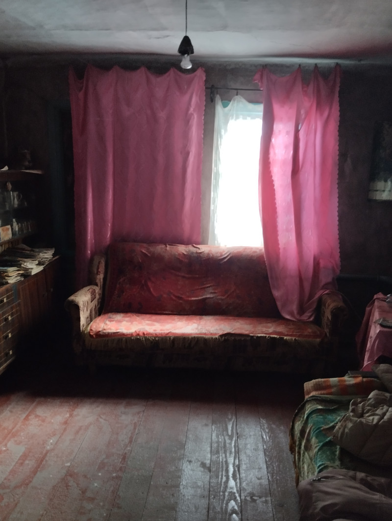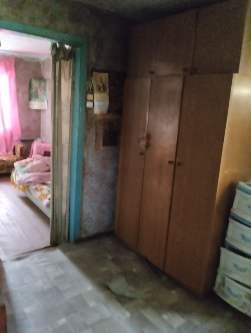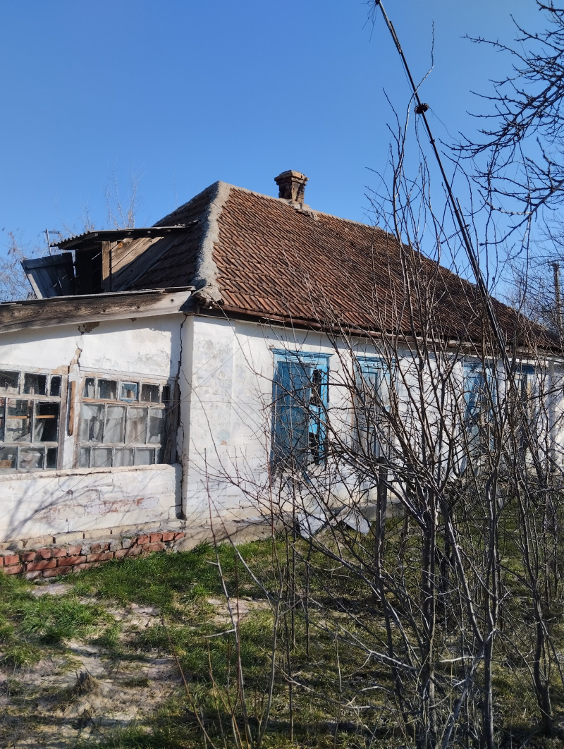 На участке растут деревья, создающие уютную атмосферу. Дом требует внимания, но потенциал для комфортного проживания очевиден.