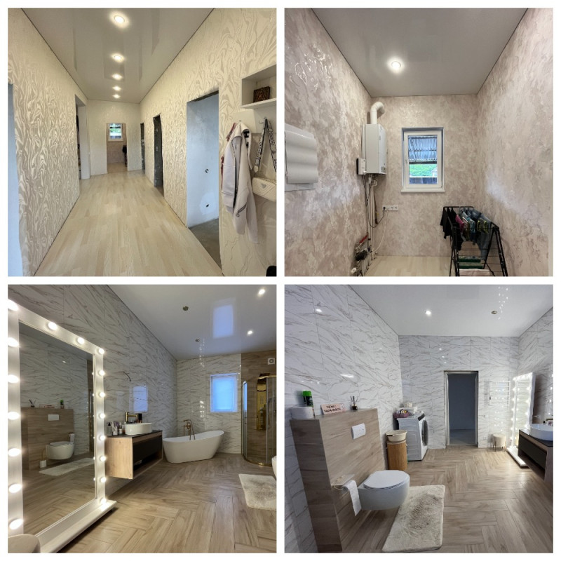 Продаётся современный, новый блочно-кирпичный дом, со всеми удобствами, 2022 года постройки, в мкр. «ВИНОГРАДНЫЙ» (в этом районе находится санаторий «ЛАБА»). Дом расположен на асфальтированной дороге, по ул. Учебная. Внутренняя отделка почти закончена: осталось сделать две комнаты, материал имеется. Дом общей площадью 116 кв. м. , жилой 48, 3 кв. м. , 3 изолированные спальни (16, 8; 16, 4; 15, 1 кв. м. ), большая кухня-столовая пл. 27, 4 кв. м. с выходом на крытую террасу (останется новая встроенная кухня), ванная 12, 5 кв. м. , коридор 12, 1 кв. м. , котельная. Коммуникации все подведены и оформлены. Отопление газовое (настенный двухконтурный котёл), вода своя из скважины, своя выгребная яма, свет. Везде сделаны тёплые полы, кроме спален. Коммунальные услуги не большие. Имеется заезд для автомобиля, навес, земельный участок 4, 1 сотки (в собственности, проведено межевание), двор огорожен металлическим забором. Останется выбрать дизайн и материал для двора по вашему усмотрению! Всё необходимое рядом, до 300-го квартала 7 минут езды. Документы в порядке. Один собственник.