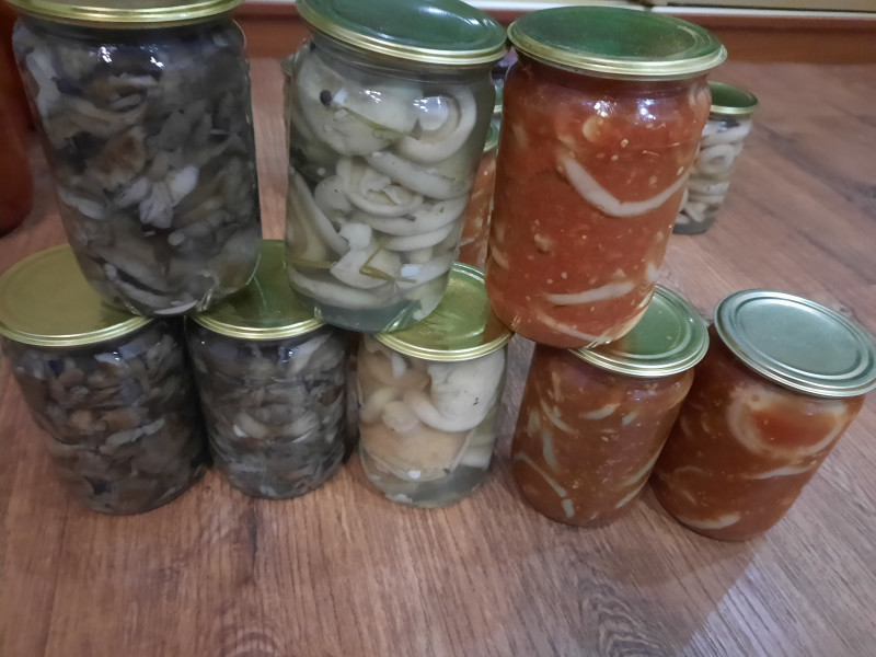 Грибы маринованные опята, грузди, грузди в томате, синие ножки, шапиньоны, черемша, черемша в томате, очень вкусный рецепт банки 0. 7 стоимость 350 рублей.