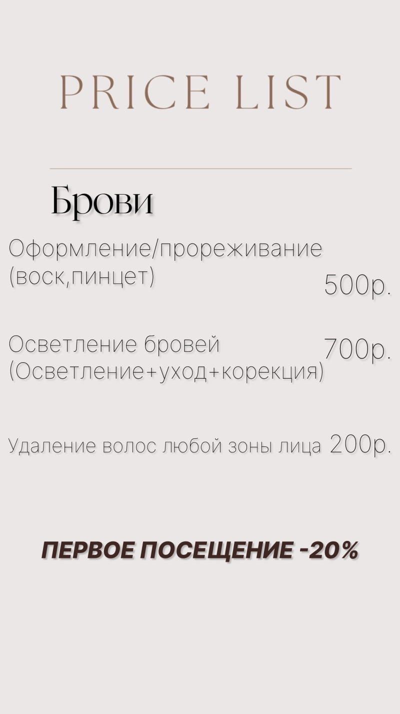 Привет милая меня зовут Елена я brow мастер и рада предложить свои услуги по созданию идеальных бровей. Окрашивание, ламинирование и другие процедуры – все это ждет тебя! Если ты хочешь преобразить свой взгляд и подчеркнуть свою индивидуальность, записывайся ко мне. Буду рада помочь! ПЕРВОЕ ПОСЕЩЕНИЕ -20%