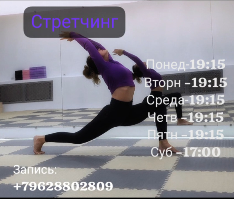 Растяжка, подкачка, стретчинг, шпагат, здоровая спина для взрослых. Тренировки всегда стабильно Понед-пятница в 19:15; Суббота в 17:00. Уровень физ. подготовки любой. Индивидуальный подход к каждому клиенту, консультация! Стоимость услуги -350р. район- центр ДК. Обр. +79628802809 Мария.