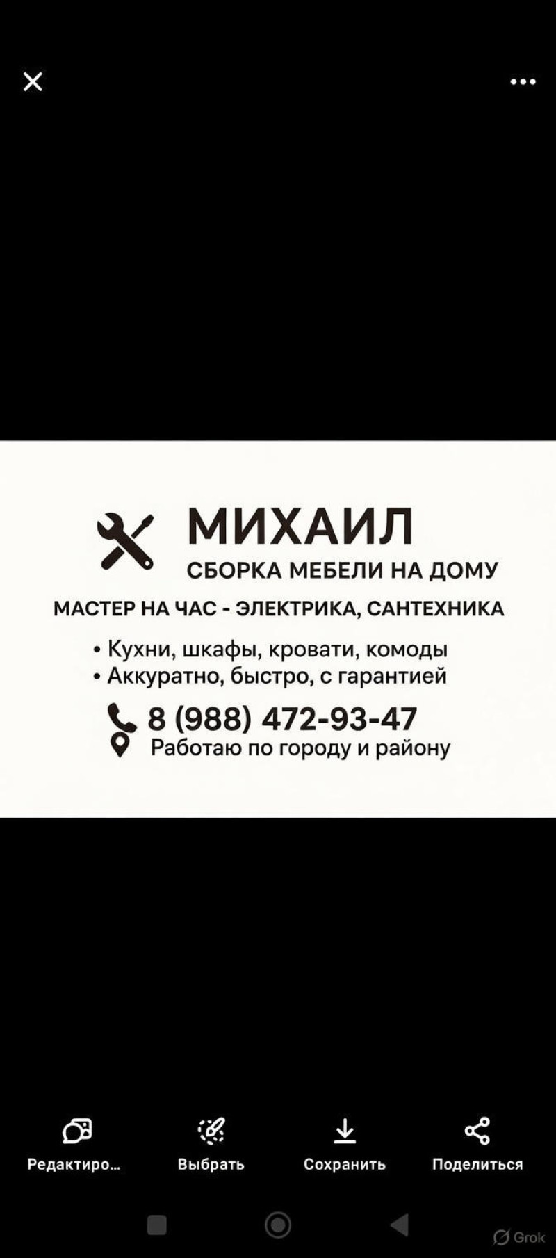 Профессиональная сборка всех видов мебели. Тагже оказываю услуги мастер на час электрика, сантехника. Михаил