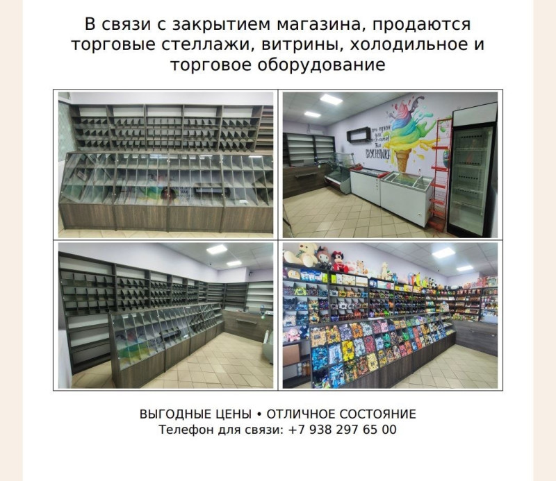 Всвязи с закрытием магазина, продаются торговые стеллажи, витрины, холодильное и торговое оборудование. Отличное состояние, выгодные цены и торг при оптовой закупке.