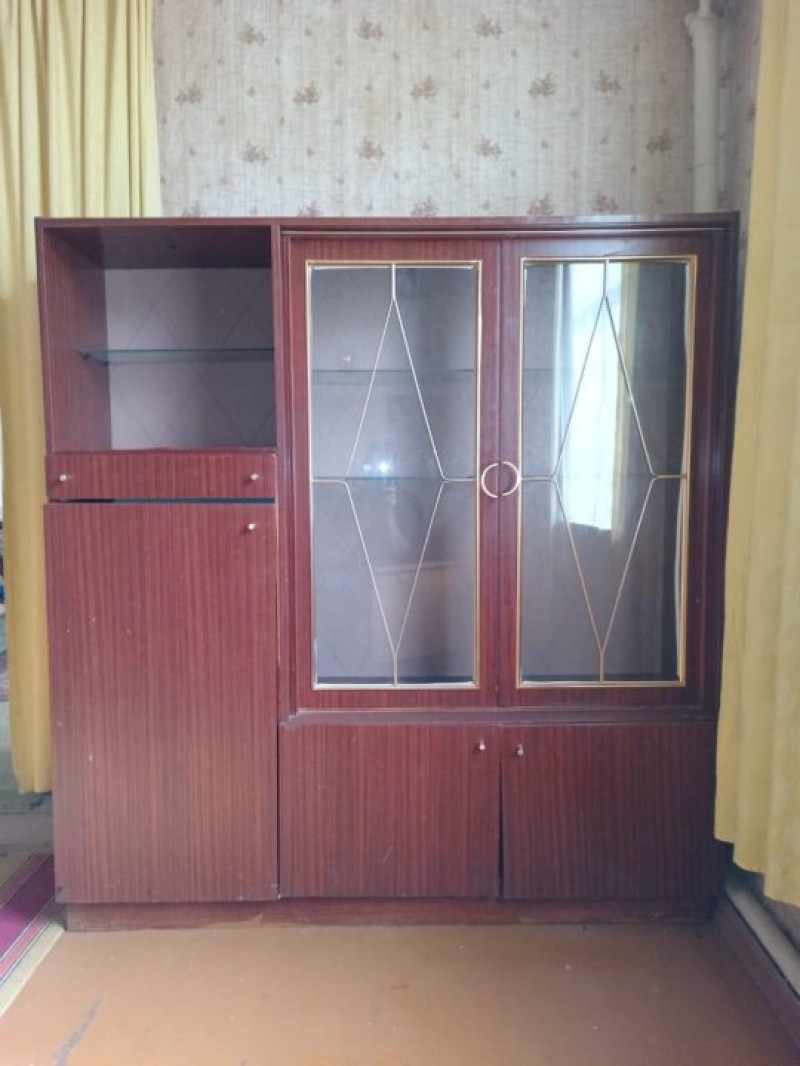 Продаётся 1)мебельная стенка (б/у), в неё входит шифоньер с антресолями, стенка по секциям(4 секции +шифоньер), остеклённая, с зеркалами. Много ящиков и полок. Есть бар. Свет светлый орех. Длина стенки 4 м. 65 см. Очень вместительная. Цена 10000 рублей. 2)Шкаф-сервант (б/у). Высота шкафа 215 см, длина 160 см. Цена 3000 рублей. 3). Сервант (б/у). Длина 1, 5 м, ширина 39 см, высота 1, 6 м. Цена 2000 рублей. 4)Стол компьютерный б/у. 2000 рублей.