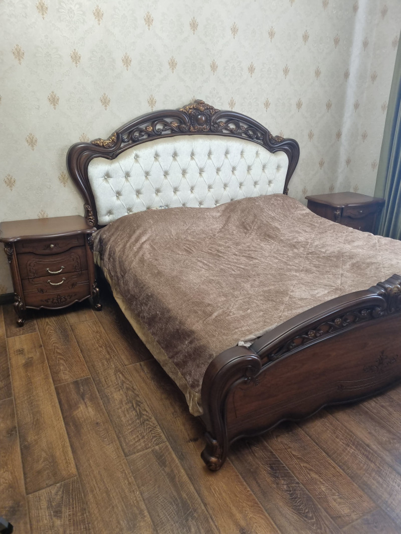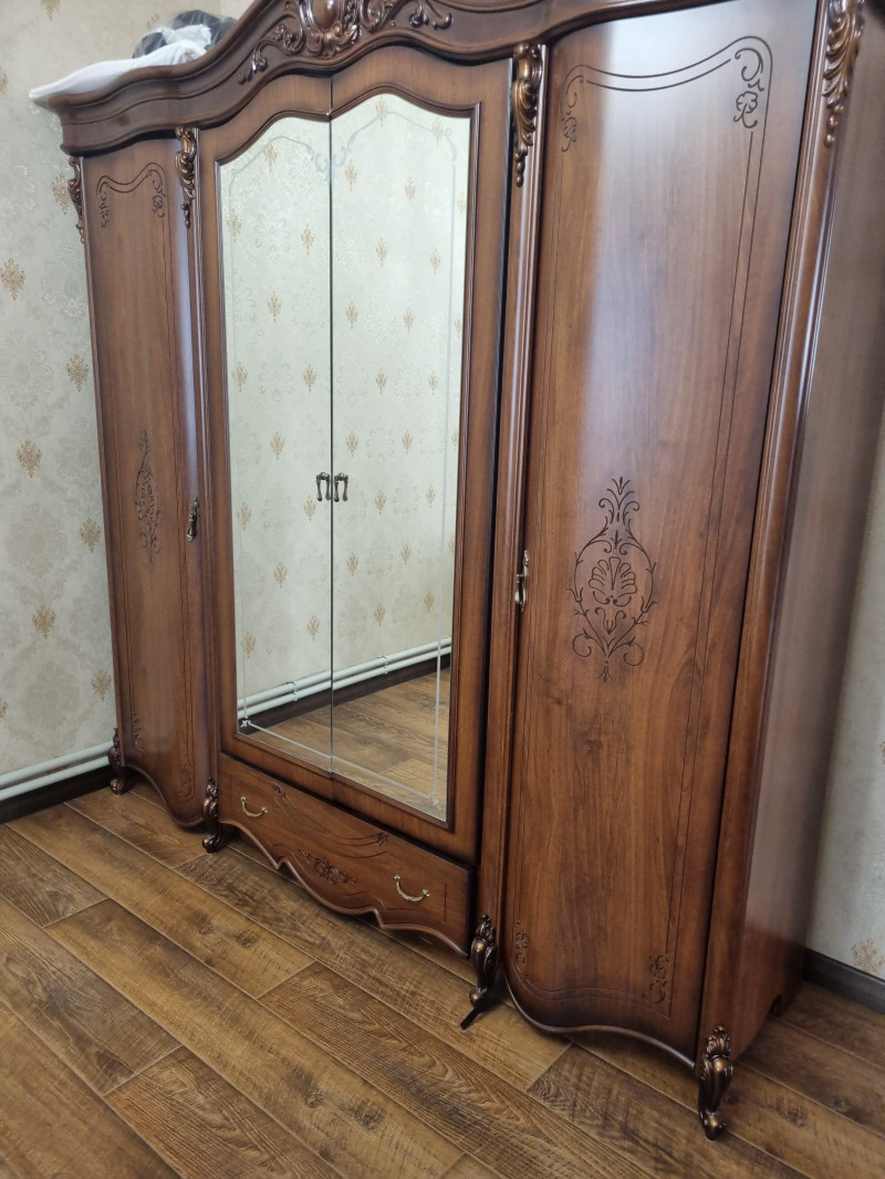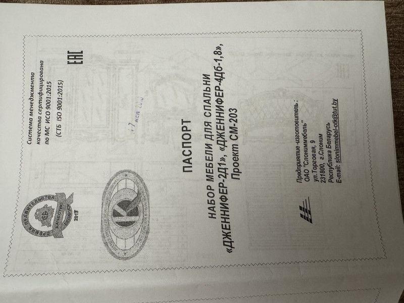 Спальня Дженифер продается только комплектом. В составе комплекта: • Шкаф 4-х дверный, размеры: ширина - 230, 5 см. , глубина - 65, 7 см. , высота - 233, 5 см. • Кровать 180 (спальное место 180х200 см. , с решеткой, без матраса), размеры: длина - 214 см. , ширина - 210 см. , высота - 147, 4 см. • Туалетный стол, размеры: ширина - 166, 2 см, глубина - 47, 5 см. , высота - 76 см. • Зеркало, размеры: ширина - 105 см. , толщина - 7, 5 см. , высота - 126. 6 см. • Тумба прикроватная (2 шт. ), размеры: ширина - 61. 1 см. , глубина - 47, 5 см. , высота - 63, 2 см. • Пуф, размеры: размеры: ширина - 42 см. , глубина - 34 см. , высота - 40, 5 см. Материалы: Ламинированная ДСП, фасады МДФ, декоративные элементы из полиуретана. Мебель продается без матраса!!! Торг уместен. Самовывоз! Цена 40 т. р.