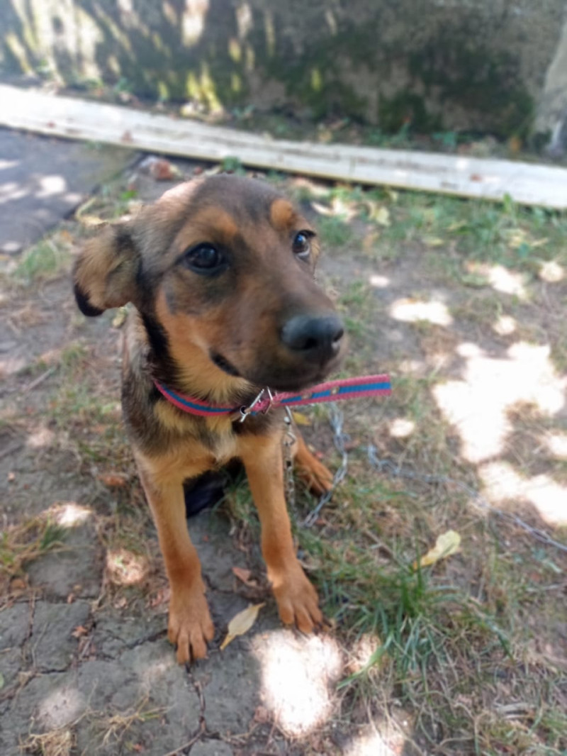 Отдам щенка подростка в добрые руки!Будет небольшая, приучена к цепи , ест все , что дадите, уже охраняет во всю двор.