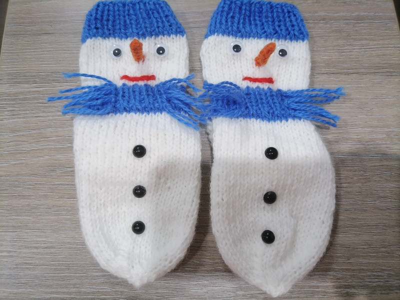 Носочки детские - снеговички, ручная вязка, бесшовные, с усиленной пяткой. Состав-акрил. Данное изделие подойдёт на 26 - 28 размер. Можно связать большего или меньшего размера, в других цветах. Цена 250 рублей.