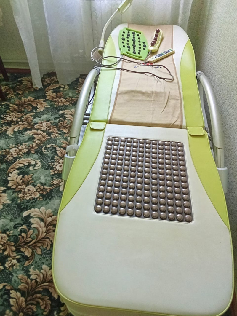 Массажная кровать «НУГА БЭСТ» в идеальном состоянии ( Южная Корея ) с приложениями. Массаж спины это: расслабление мышц; разогрев связок; коррекция позвоночника; восстановление нервной проводимости от головного мозга ко всем органам; избавление от межпозвоночной грыжи. Приложения: 1- Пятишариковый проектор повышает иммунитет и активность клеток в области действия лучей. 2- Пояс миостимулятор: тренирует и укрепляет мышцы; уменьшает подкожно-жировой слой; стимулирует моторику кишечника; снимает боль в мышцах; улучшает кровообращение и усиливает лимфодренаж. Кровать можно использовать с 4х летнего возраста. Кровать в идеальном состоянии. Покупали за 160 тысяч. продается за 90 тысяч